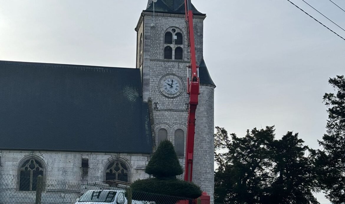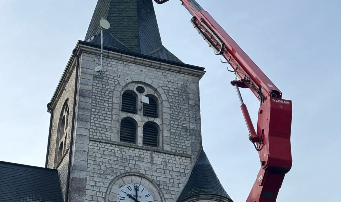 Un chantier rendu possible grâce à une nacelle grande hauteur (22 m), permettant un accès précis tout en garantissant la sécurité des équipes. Ce type de matériel est indispensable sur des bâtiments classés ou difficiles d’accès, comme les églises ou les châteaux mais aussi interventions en copropriété, sur bâtiments publics ou maisons à étages..